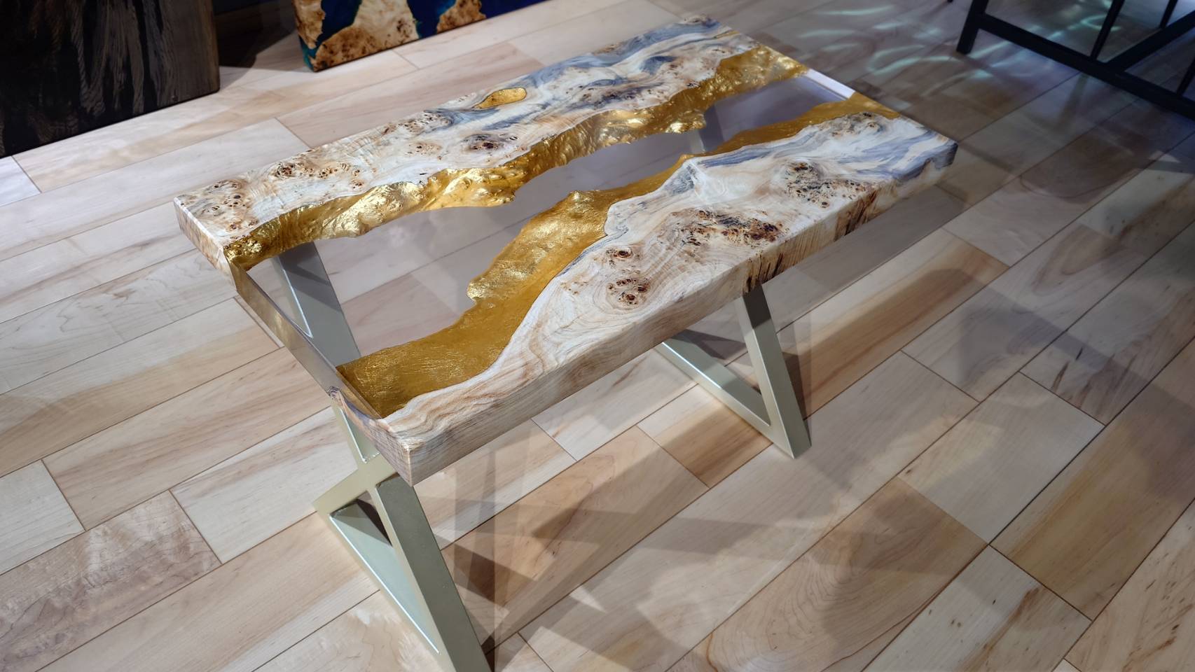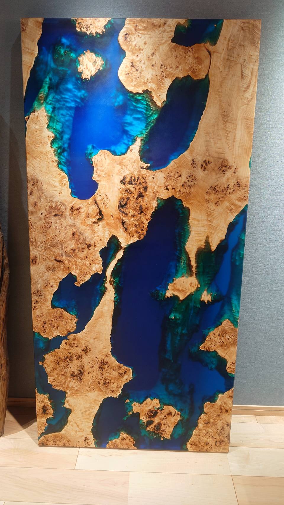 内容をよくお読みになってからご検討してください。 完全一点物です。 熱いコーヒーやお茶などをレジン部分に置く際はできるだけコースターを使用してください。 日が当たる場所での使用は変色を招くため配置には気を付けてください。 外で撮影しているため、色が明るく見えています。 もともとの木のクセや変色している部分もありますが、それも味です。 神経質な方はご遠慮ください。 傷などができた場合、天板のみ発送していただければ修復させていただきます。