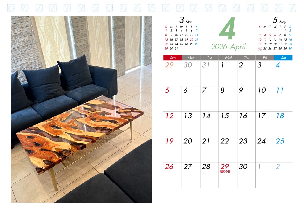 各日に簡単な書き込み・シールを貼ることのできるカレンダーとなります。